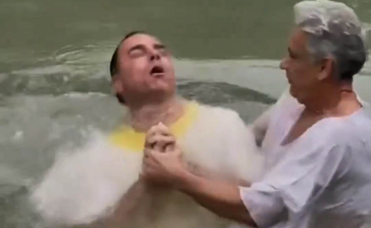 O senador Flávio Bolsonaro (PL-RJ) compartilhou nas redes sociais um momento de fé vivido durante uma viagem oficial a Israel, ao publicar imagens no Rio Jordão ao lado da esposa, onde aparece mergulhando nas águas em um gesto interpretado como renovação espiritual; o local é conhecido biblicamente como o rio onde Jesus Cristo foi batizado, sendo um dos principais símbolos do cristianismo, e a publicação ganhou ampla repercussão entre apoiadores e críticos após o parlamentar escrever a frase “O Brasil é do Senhor Jesus”, declaração que mobilizou elogios de setores religiosos e também gerou debates sobre a relação entre fé, política e Estado nas redes sociais.