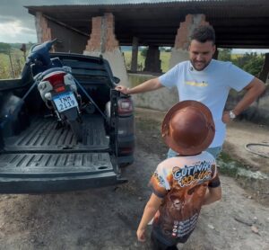 O jovem Gutinho Rocha, natural de Girau do Ponciano, bastante conhecido nas redes sociais, fez um pedido especial no aniversário de um dos irmãos: ganhar a tão sonhada motocicleta. O tempo passou, mas a promessa foi cumprida. Em um gesto emocionante, Alef e Adamy entregaram a Gutinho uma Honda Biz 125 zerada, realizando um de seus maiores desejos. Durante a entrega, os irmãos reforçaram que o presente deveria ser utilizado de forma responsável, pedindo que a moto fosse conduzida apenas após a maioridade e que, por enquanto, servisse como apoio para a família.