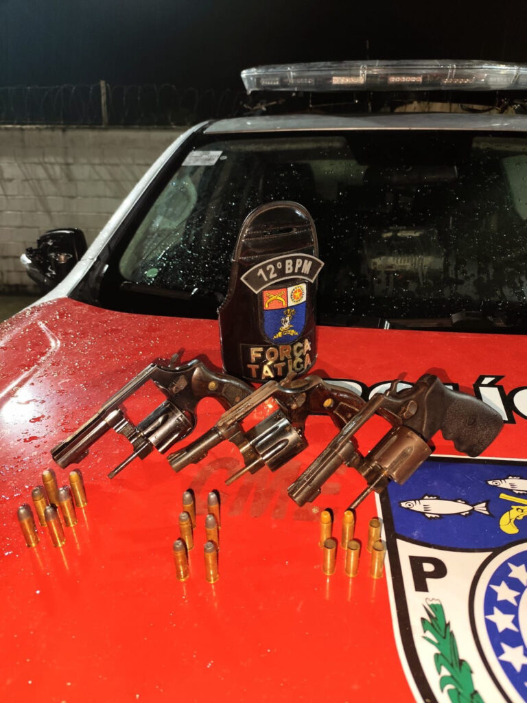 Na ação, a polícia apreendeu três armas de fogo e diversas munições em poder dos suspeitos. O caso reforça a atuação da PM no combate à criminalidade na região e segue em investigação pelas autoridades competentes.